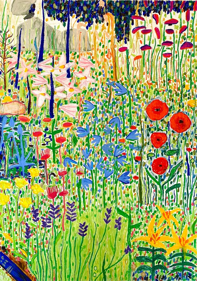 Oil pastel is very easy and direct to use. I enjoy the vibrancy of the colours and the active energy of applying it. You can’t really be very delicate with it.
